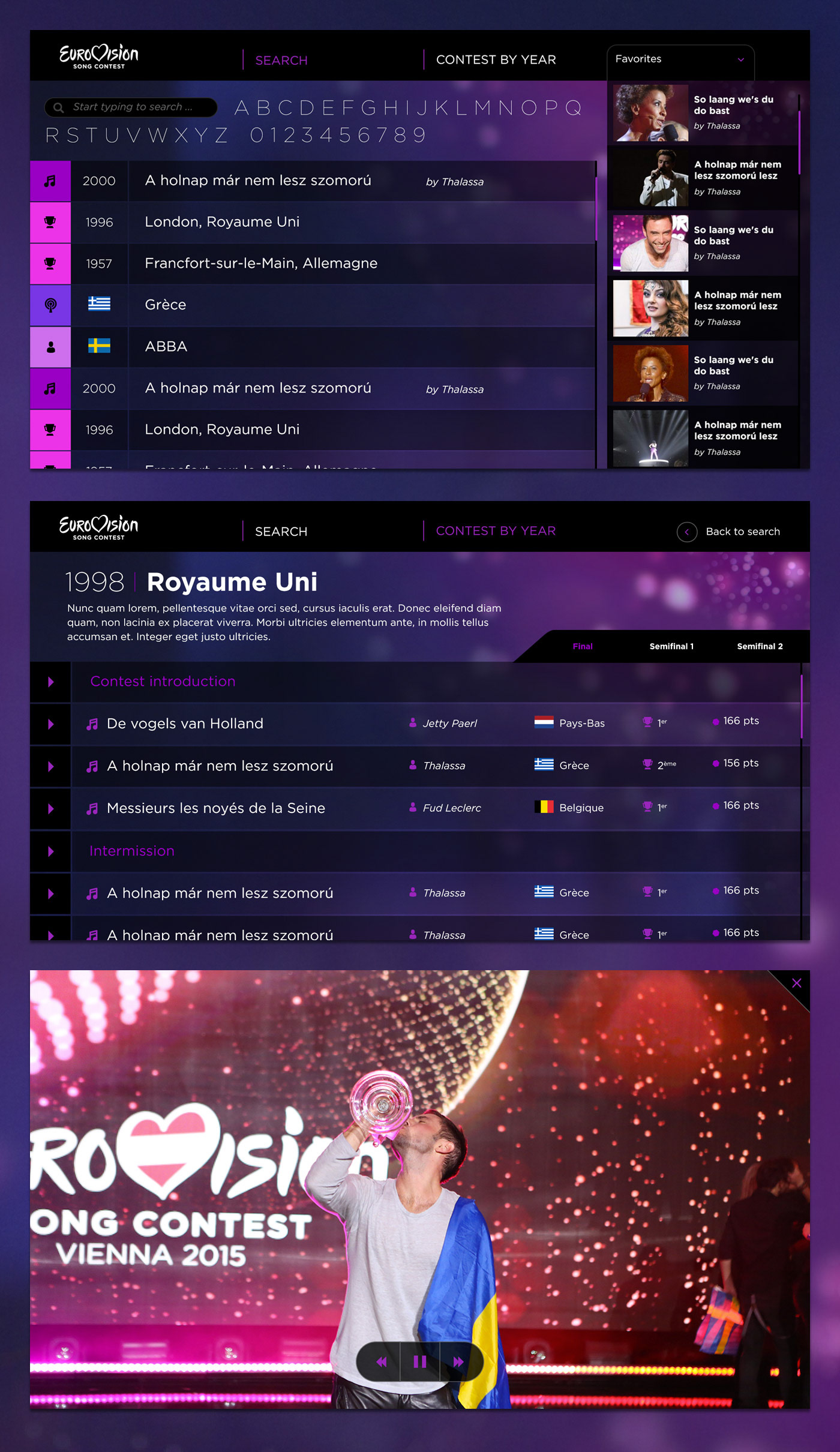 Application permettant de parcourir les archives de l'eurovision depuis sa création. Support Surface Hub de Microsoft